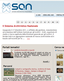 Inaugurato il 17 dicembre 2011 il Portale SAN, realizzato dal MiBACT, è un aggregatore nazionale di risorse archivistiche, risultato di un'operazione di allineamento dei sistemi informativi archivistici SIUSA e SIAS.