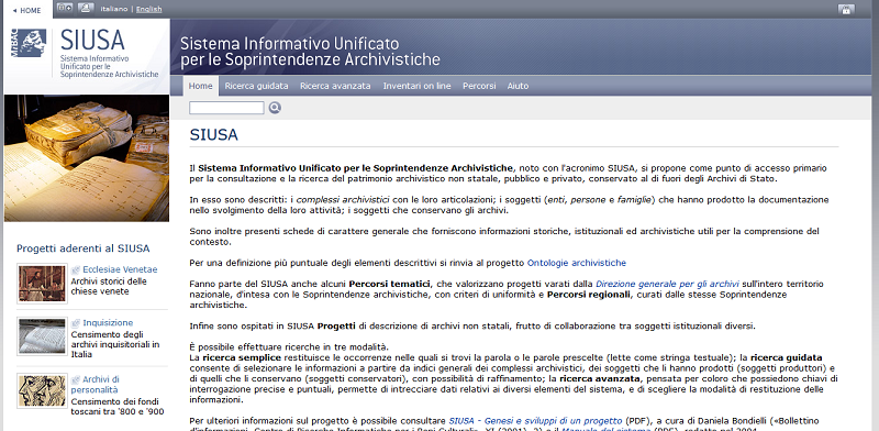Il Sistema Informativo Unificato per le Soprintendenze Archivistiche, noto con l'acronimo SIUSA, è un progetto nazionale che si propone come punto di accesso primario per la consultazione e la ricerca del patrimonio archivistico non statale, pubblico e privato.