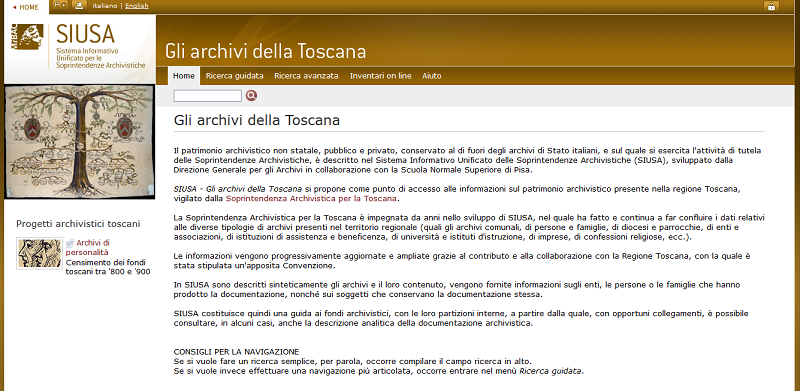 Il progetto costituisce un punto di accesso alle informazioni sul patrimonio archivistico presente nella regione Toscana, vigilato dalla Soprintendenza Archivistica e Bibliografica della Toscana. La Soprintendenza, in collaborazione con la Regione Toscana, è impegnata da anni nello sviluppo di SIUSA, nel quale ha fatto e continua a far confluire i dati relativi alle diverse tipologie di archivi presenti nel territorio regionale.