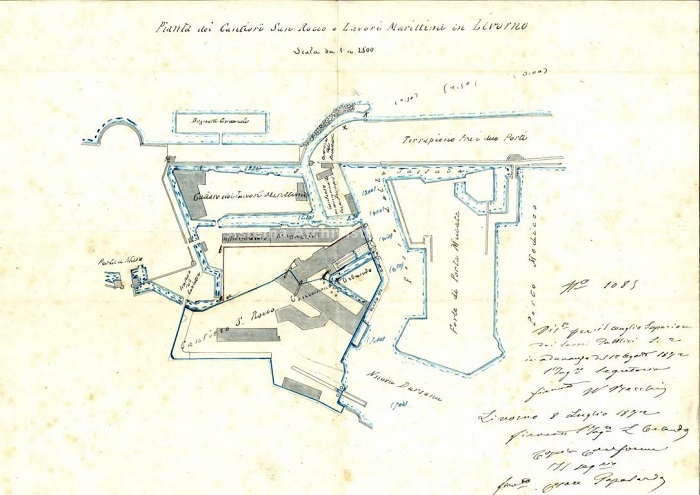 Nel 1866 i fratelli Orlando, imprenditori siciliani emigrati a Genova, ove si erano dedicati alle costruzioni navali e all’industria meccanica, giunsero a Livorno e presero in concessione dal Governo italiano l’arsenale militare marittimo di San Rocco, progettando di trasformarlo in uno stabilimento per le costruzioni navali in ferro.