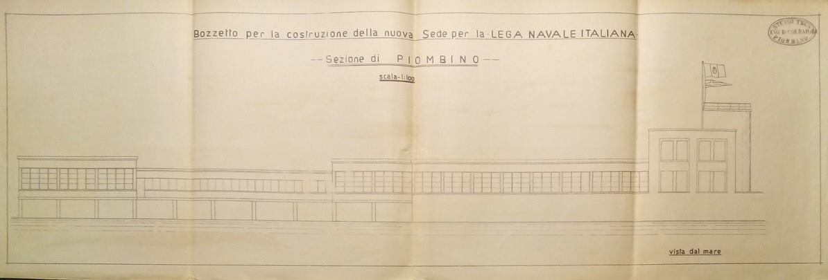 Il progetto fu presentato dall’ing. Domenico Collavoli e andò a sostituire il precedente edificio, costruito a Marina nel 1932 e distrutto da un “ciclone” abbattutosi sulla città il 28 settembre 1936. La Lega Navale era stata fondata a Piombino nel 1926 e la prima struttura che ne ospitò la sede, in materiale ligneo e copertura a volta di lamierino, andò a sostituire lo stabilimento balneare di fine Ottocento (i bagnetti).