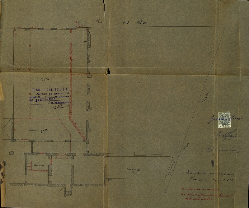 In un’epoca di cinema multisala e di visioni 3D può destare curiosità il progetto di un “salone per proiezioni cinematografiche” fra via dell’Ulivo e via Verdi che risale a quasi cento anni fa?