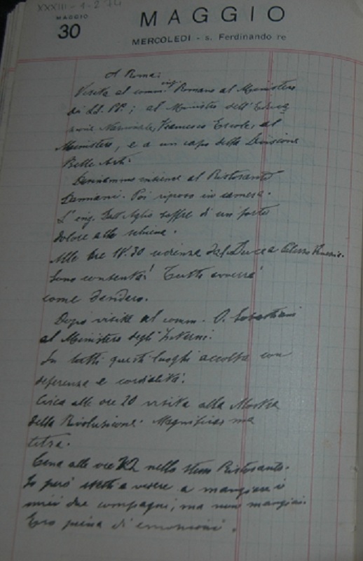 Maria aggiunge poi a margine un’annotazione: Giornata indimenticabile! Tra i dieci convitati c’era pure l’ingegnere dell’Asilo, Coriolano dall’Aglio e il mio fido Italo Stefani e anche il Podestà di Barga.