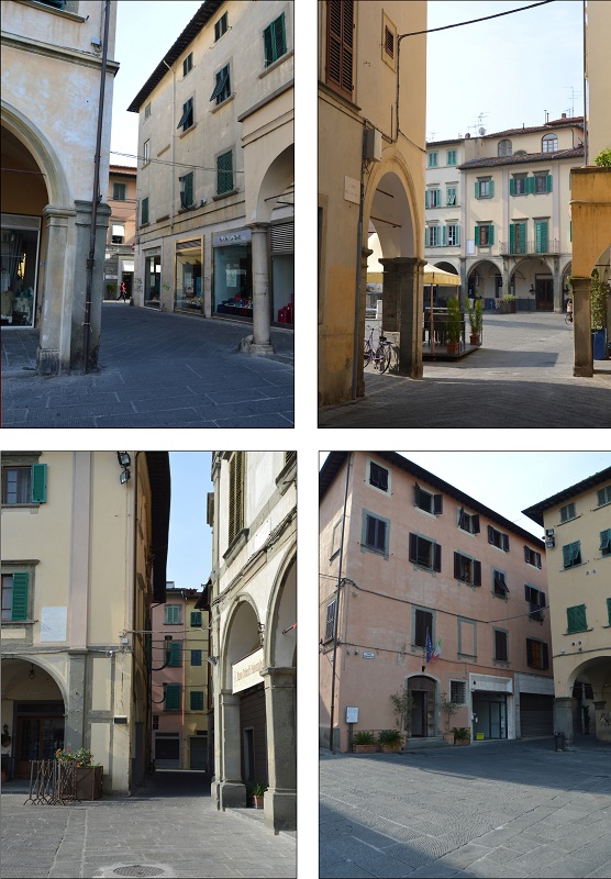 Nel pieno centro storico di Empoli, Piazza Farinata degli Uberti comunica con le parallele vie del Giglio e Giuseppe Del Papa attraverso quattro vicoli in corrispondenza degli angoli della piazza, da cui il nome di canti. Sul lato della Collegiata, a sud, troviamo il canto del Pretorio (ASCE, Preunitario, Comunità 578, Progetto per la nuova disposizione dei banchi del mercato, 1842; ASCE, Misc. U.T. 41/5, «Elenco strade comunali…» 1868: «Canto del Pretorio dalla d.ta piazza [Farinata, n.d.c.] alla via Ferdinanda»), la cui denominazione, in uso fin dal XIX secolo, si deve alla presenza sulla via dell’antico palazzo Podestarile, poi Pretorio. Qui avevano sede le magistrature che nel corso dei secoli hanno amministrato la giustizia nel territorio empolese: prima il Podestà con la sua ‘corte’, dal 1848 il Pretore con funzioni di giudice e ufficiale di polizia.
