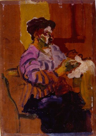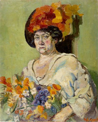 Dello stesso anno anche un’altra opera, sempre dedicata alla madre, Ritratto con cappello e fiori, un olio su tela, dove la madre è ritratta nello studio del figlio con un mazzo di fiori in mano, è quasi un’immagine di esuberanza primaverile, con cui contrastano lo sguardo austero e il chiuso della stanza.