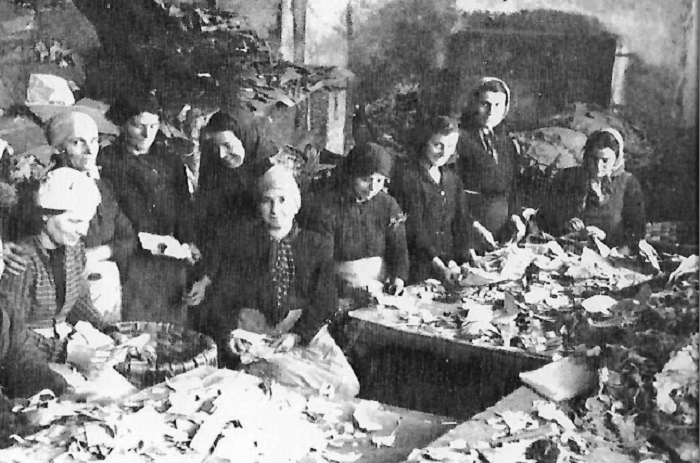 C’erano poi le donne dedite all’agricoltura, comprensiva dell’allevamento del bestiame, e quelle occupate negli opifici: in Valdinievole molte attività agricole si sono spesso legate a un mercato a largo raggio o anche all’utilizzo dei prodotti nelle manifatture, come nei casi del vivaismo, della floricoltura, ma anche della lavorazione delle erbe palustri, della coltivazione e dell’essiccazione del tabacco. A Pescia vengono fotografate molte donne al lavoro nei campi di garofani o a incestare i mazzi prodotti; sono anche riprese le lavoranti “a opra” come quelle assunte per sboccettare i garofani o le innestine impiegate nei vivai d’olivo. Nel padule di Fucecchio si raccoglieva il sarello che, una volta essiccato, veniva utilizzato per rivestire i fiaschi e le damigiane o per impagliare le sedie. Anche la bachicoltura ebbe grande diffusione in Valdinevole fino alla Seconda Guerra Mondiale, soprattutto nelle famiglie di ceto medio: tutto ciò che rutoava intorno all’allevamento del baco da seta e al lavoro in filanda rappresentava per l’economia del territorio una risorsa molto importante. Altro settore trainante dell’industria valdinievolina fu quello delle cartiere: anche qui è documentata la massiccia presenza di donne, intente sia a sminuzzare stracci e cartacce da “rimpastare”, sia a essiccare e selezionare i fogli prodotti. Ci sono poi le altre industrie, con le sigaraie di Ponte Buggianese addette alla raccolta e essiccazione del tabacco; le berrettaie di Borgo a Buggiano; le cartaie e le caldaiole di Pescia.