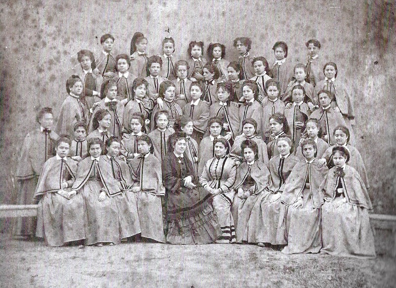 Le collegiali della Scuola Normale di Lucca, 1865. La seconda da sinistra in prima fila è Paolina Palamidessi di Pescia