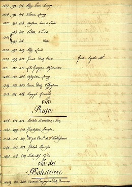 Grazie all’Antico stradario del Comune di Firenze, siamo in grado di ricostruire l’andamento della numerazione francese, che iniziando da Palazzo Vecchio con il n. 1 arrivava fino al n. 8028 in via del Fosso, attuale via dei Benci.