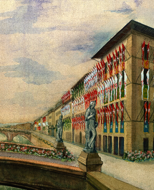 Per addobbare Firenze l’Amministrazione comunale incarica infatti, il 7 febbraio 1938, il Direttore della Direzione III – Lavori Pubblici ed Urbanismo, l’ing. Alessandro Giuntoli, della costituzione di un ufficio dedicato - per la speciale organizzazione artistica e tecnica - e dotato di personale tecnico, amministrativo e contabile perché il disbrigo delle numerose pratiche e lavori possano svolgersi nel modo più semplice e più celere. Si tratta dell'“Ufficio per i festeggiamenti in occasione della visita del Führer”: il coordinamento delle varie fasi della festa e la regia dell'intera manifestazione sono affidati a Giorgio Venturini, regista e autore drammatico, a confermare lo stretto rapporto tra la manifestazione politica e lo spettacolo teatrale.