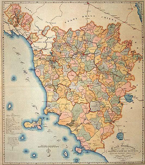 Nel 1834 con l'attuazione del Catasto si chiude in Toscana l'epoca della cartografia pregeodetica.