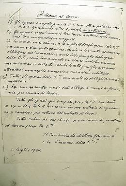 CPLN, Ordini tedeschi c.1, Organizzazione Todt - Richiamo al lavoro - 3 luglio 1944