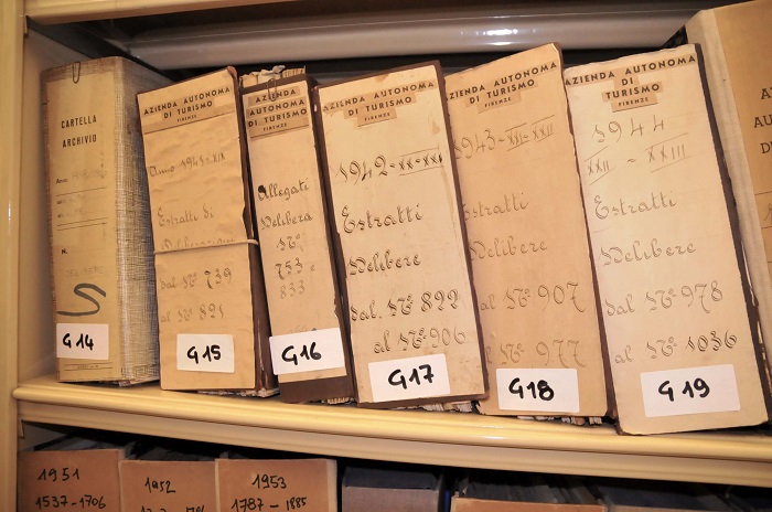 Viste le specificità di questo importante istituto, in fase di descrizione archivistica, abbiamo ritenuto importante giungere ad un’inventariazione analitica della buste afferenti alla serie “Mostre” ed a quelle inerenti le attività delle pertinenze dell’ente quali palazzo Strozzi, villa Vittoria (palazzo dei congressi), Forte di Belvedere, Golf dell’Ugolino, villa di Camerata. Una volta terminata la descrizione delle unità archivistiche ed avendo individuato le serie documentarie, abbiamo ricollocato il materiale secondo queste partizioni e proceduto a cartellinare. Oltre al materiale organizzato in busta sono stati ordinati i registri relativi ai consigli di amministrazione e alla contabilità.