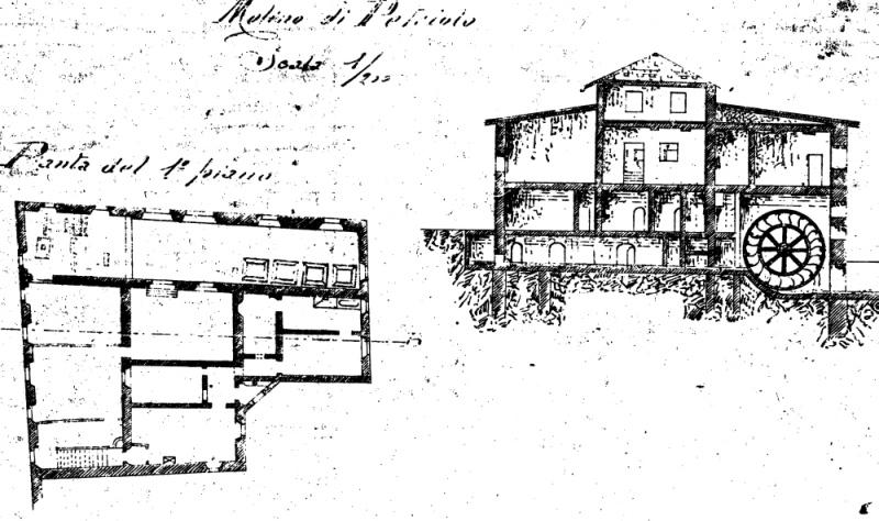 Proseguendo sotto via del Canale fino all’incrocio con via di Peretola, finalmente il fosso esce allo scoperto e scorre nella piana costeggiando l’abitato di Quaracchi, Brozzi e San Donnino fino ad incrociare il Bisenzio a San Mauro a Signa. Proprio da questa frazione prende nome il mulino di San Moro, imponente edificio che nonostante lo stato di abbandono in cui si trova conserva le sue sembianze originarie e tuttora colpisce per la sua essenzialità ed austerità. Dopo il 1921 il mulino è stato regolarmente affittato dal comune per diversi anni, ma il successivo disuso lo ha ridotto in precarie condizioni di conservazione. Già nel 1946, anno a cui risale l’ultimo atto di affitto reperito, alcuni ambienti apparivano in cattive condizioni anche a causa di danneggiamenti dovuti agli eventi bellici. Allegato a tale atto si trova uno stato di consistenza degli immobili e dei macchinari che ci permette di ricostruire con precisione quale fosse la disposizione sia degli ambienti esterni che di quelli ai piani terreno e primo: un piazzale scoperto con annesso terreno adibito ad orto, un portico, una rimessa, il salone del mulino, l’abitazione del mugnaio al primo piano.