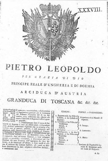 Le riforme leopoldine, miranti a rendere razionali le strutture statali, uniformarono in tutto il Granducato le magistrature locali, abolendo ciò che rimaneva del feudalesimo, ma anche il sistema municipale e con esso l'autonomia gestionale di ogni comune. La Lunigiana fu divisa in tre cancellerie: Fivizzano, Pontremoli e Bagnone, quest'ultima comprendente anche le comunità di Albiano, Groppoli, Terrarossa e Calice.