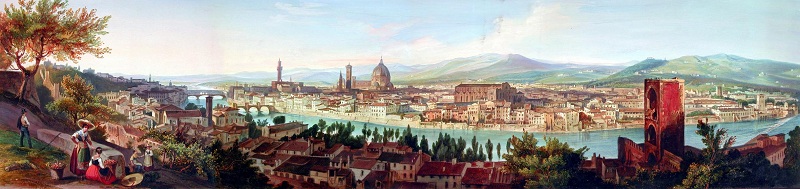 Veduta del fiume Arno nel tratto compreso tra la pescaia di S. Niccolò e il Ponte Vecchio (metà XIX sec.)