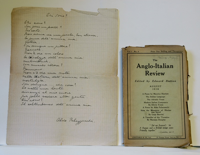 La collezione Hutton consiste di oltre 500 lettere, più di 60 manoscritti e dattiloscritti, ritagli di giornale, appunti e lavori pubblicati. Nato nel 1875, Edward Hutton fece il suo primo viaggio in Italia quando aveva ventun’anni. Nella primavera del 1901 affittò la “Casa di Boccaccio” a Ponte a Mensola; qui Hutton cominciò a scrivere i libri di viaggio che lo resero famoso, The Cities of Umbria (Londra 1907), Country Walks about Florence (London, 1908), Siena and Southern Tuscany (Londra, 1910), Venice and Venetia (Londra, 1911), Rome (Londra, 1912) e Naples and Southern Italy (Londra, 1915). A Hutton infine si deve un importante lavoro biografico sul Boccaccio (pubblicato a Londra nel 1910), che ancora oggi viene citato e raccomandato nelle bibliografie. Durante la prima guerra mondiale la sua attività a Firenze contribuì alla fondazione dell’Istituto Britannico e nel 1918 fondò l’Anglo-Italian Review.